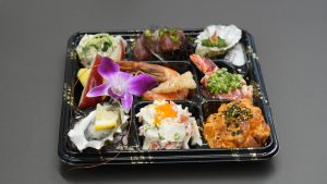 料理をカウンターで注文した後は、店内のダイニングスペースか、ロイヤルハワイアンアベニュー沿いのパラソル付きのパティオ席でいただくカジュアルなスタイル。ビーチやホテルの部屋でのんびり楽しみたい方に嬉しいテイクアウトにも対応している。